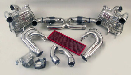 The dyno sheet referenced above is from a car with a 100-cell sport cat. The units are measured in metric PS (Hp), the red lines and metric NM (torque), the blue lines. Base power being the dotted line, FVD power being the solid line. Maximum achieved was 250 PS (246 HP) and 305 NM (224 lb. ft) of torque. What is most important is the gains of torque are linear across the entire rev range. As we all know, what is most important to a flat 6 is torque gains in the low and mid-range. That is where this modification delivers, and seat of your pants performance gains are definitely felt.